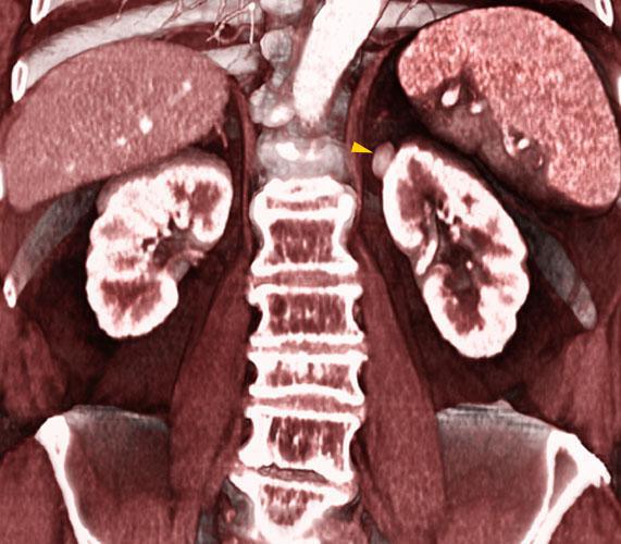 El TC (simple y contrastado) y la RM La diferenciación radiológica precisa un estudio de su localización, tamaño, densidades intratumorales, extensión, comportamiento con el contraste, afectación vascular y existencia de adenopatías locorregionales asi como afectación suprarrenal o metastásica.
